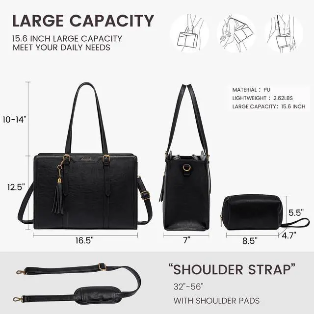 High Quality PU & DurableCrafted from high-quality PUfaux leather, this computer bag is built to withstand the test of time. Its sturdy construction and reinforced stitching ensure long-lasting durability, protecting your valuable laptop and belongings.