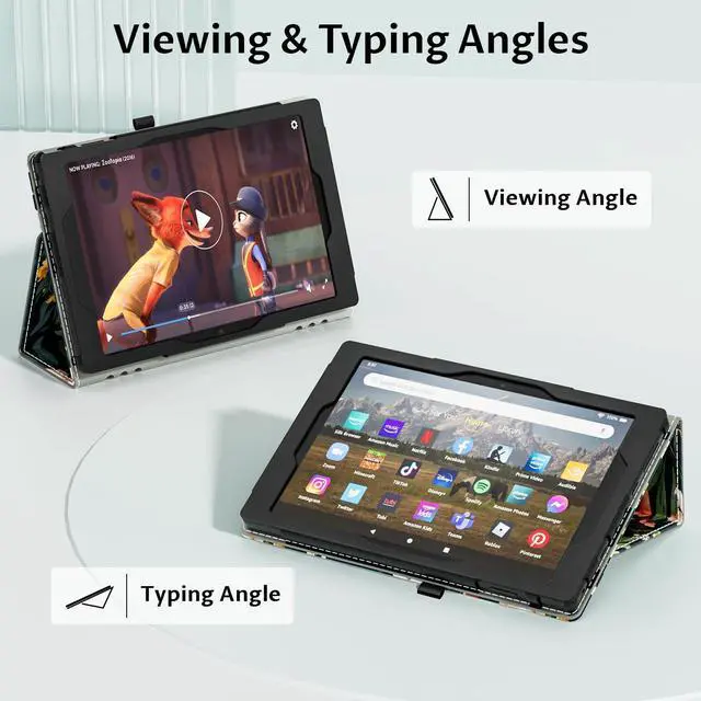 Hands-free:Experience the ease of one-handed use with the interior hand strap. The case for Kindle Fire 8 Tablet can be transformed into a horizontal viewing stand, ensuring optimal viewing and typing comfort