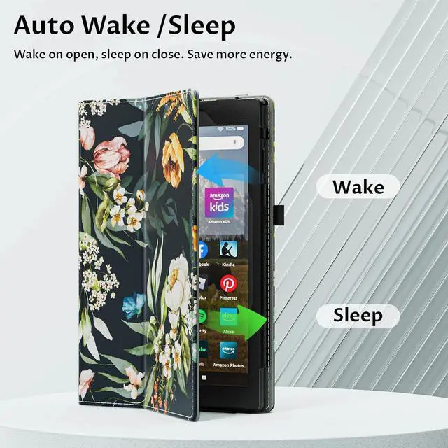 Auto Wake/Sleep: Automatically wakes or puts your Fire HD 8 tablet to awaken when you open the cover and sleeps when you close it, maximizing battery life. Plus, Easy access to all features and controls