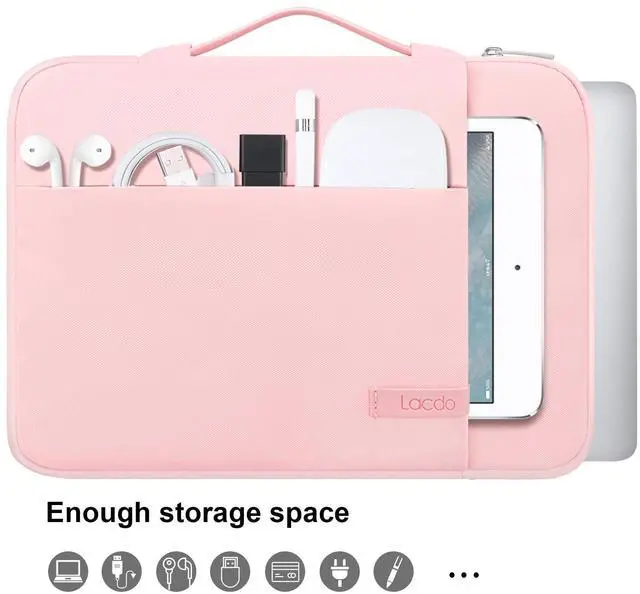 Lacdo 360° Protective Laptop Sleeve Case for 16 inch New MacBook Pro M4/M3/M2/M1 Pro/Max A3403 A3186 A2991 A2780 A2485 A2141 2024-2019, 15 inch Surface Laptop 7th Copilot+PC/6/5/4/3 Computer Bag, Pink