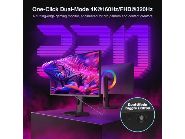 - One-click Dual-Mode Gaming Dominance160Hz UHD / 320Hz FHD "Switch between 4K 160Hz for AAA titles or FHD 320Hz for esports. With 1ms response and Adaptive Sync Premium, say goodbye to tearing and hello to pixel-perfect smoothness