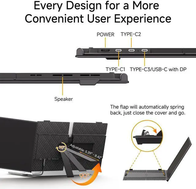 200% Productivity Surge Unlock significant efficiency gains with our portable laptop monitor. Experience seamless multitasking across multiple windows. Supporting Extended, Mirror, and Portrait modes, it effortlessly enhances presentations, workflows