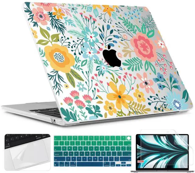 TWOLSKOO for M4 MacBook Air 13.6 inch Case 2025-2022 Release M4 A3240 M3 A3113 M2 A2681, Plastic Hard Shell & Screen Protector & Keyboard Cover & Trackpad Film, Abstract Flower