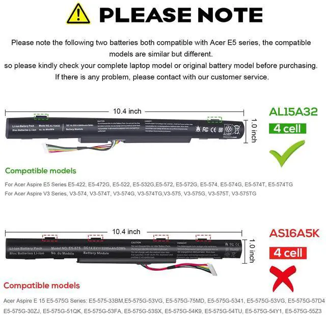 Fancy Buying AL15A32 Laptop Battery for Acer Aspire E5-422 E5-573 E5-573G E5-573T E5-522 E722 E5-473G-561X - High Performance New