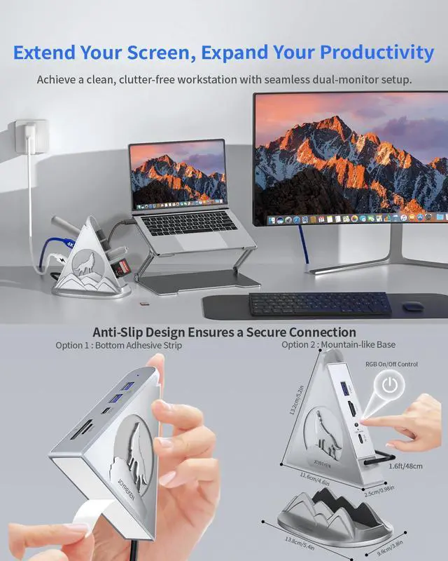 Blazing-Fast Data Transfer:Say goodbye to slow file transfers. With 3 USB 3.0 Type-A ports and 1 USB-C port, this USB-C vertical dock delivers speeds up to 5Gbpstransfer a 1GB file in 3-5 seconds. The independent SD and microSD card reader support simultaneous r