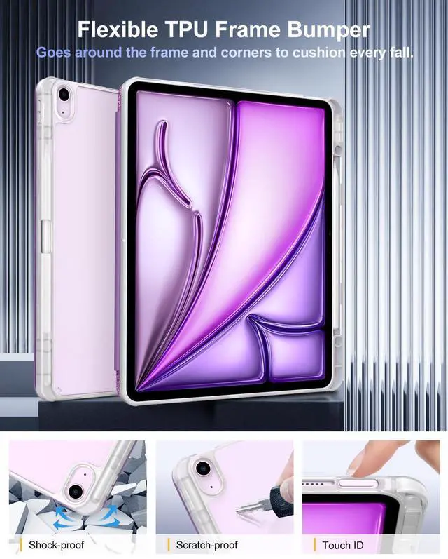 Great Protection: This ipad air 13 inch case with front PU leather and soft microfiber interior prevents your ipad from scratches. Hard PC back and shockproof TPU bumper provide great protection against shocks, drops and impacts
