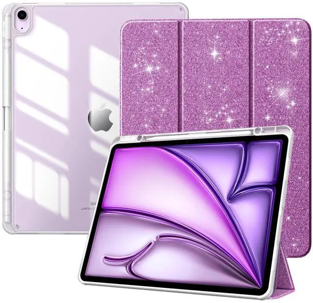 TiMOVO Case for New iPad Air 13 inch (M3/M2-2025/2024) with Pencil Holder, Slim Stand Protective Cover with Clear Transparent Back Shell for iPad Air 13 inch, Auto Wake/Sleep, Glitter Purple