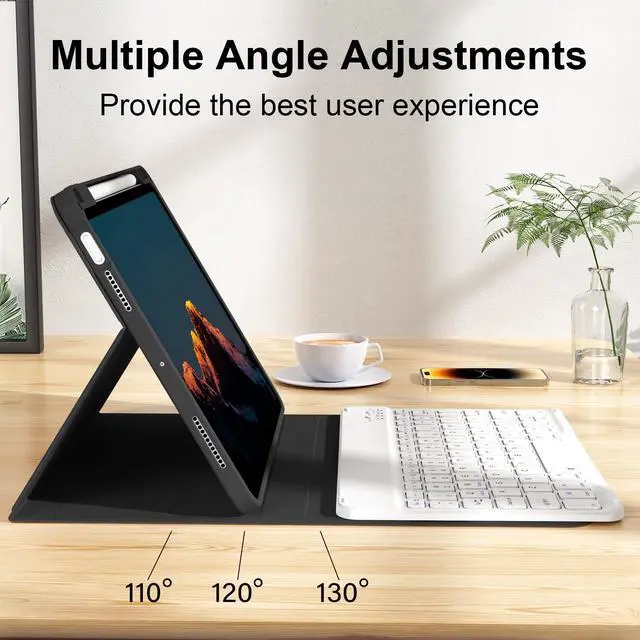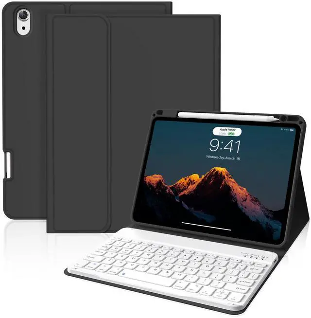 Magnetic Detachable Bluetooth KeyboardThis iPad air 11-inch M3/M2 (2025/2024) with Keyboard Case comes with a magnetic detachable lightweight Bluetooth keyboard. The iPad air 10.9 inch (2022/2020) wireless keyboard pairs quickly with your tablet via a BT connection and attaches securely to the case via magnetism, instantly turning your tablet into a portable laptop, perfect for working, typing, editing, or watching videos, dramatically increasing the productivity of your iPad