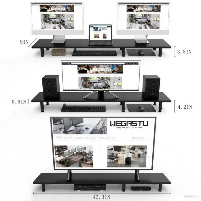 Large Monitor StandThe dimensions is 43.3"L X9.1 "W X 3.9"H. Computer monitor stands for 2 or3monitors/laptop/TV. This is an ideal choice when you need multiple computers to work together