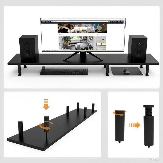 Integrated Design The WEGASTU monitor stand is made of eucalyptus trees to form a whole table, and the integrated design is used to beautify the office and leisure environment. The high-quality aluminum alloy legs are also more attractive.