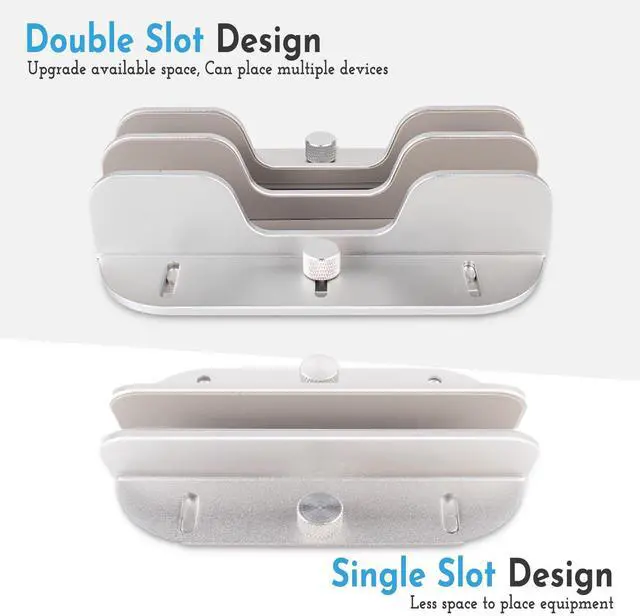 Dual-slot design: Our laptop vertical holder for desk fits two laptops in the same time to free up desk space and keep your workspace organized.