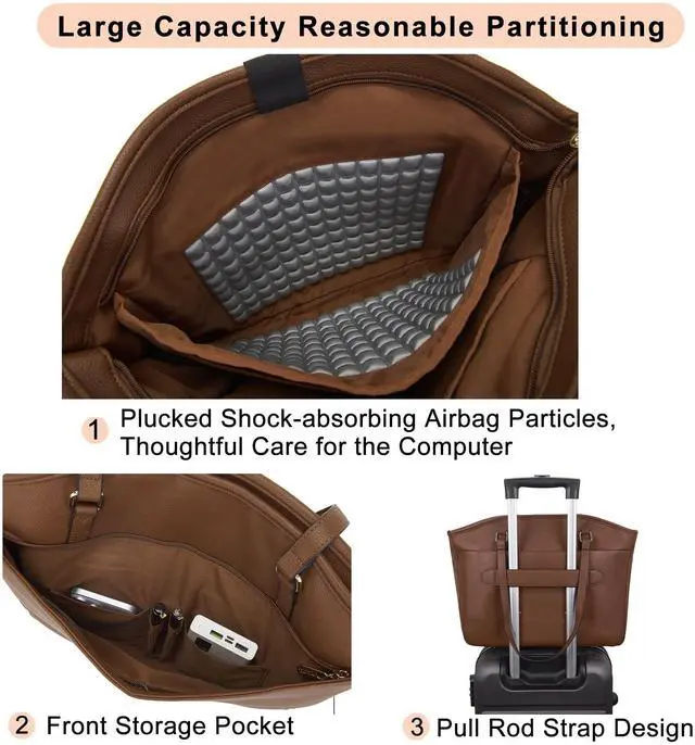 3.Travel-Ready & Ultra-Lightweight Design:Tote dimensions: 17.5"L x 5"W x 11.8"H (1.88lbs). Wallet dimensions: 8.5"L x 1.2"W x 4.7"H (0.5lbs). Luggage sleeve fits 2" suitcase handles. Dual shoulder straps for airport/commute ease.