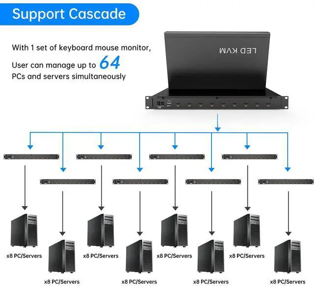 This 8 Port USB HDMI LCD KVM console is light-weighted and include every accessories required. Any questions or problems, you are welcome to contact YINKER OFFICIAL for support.