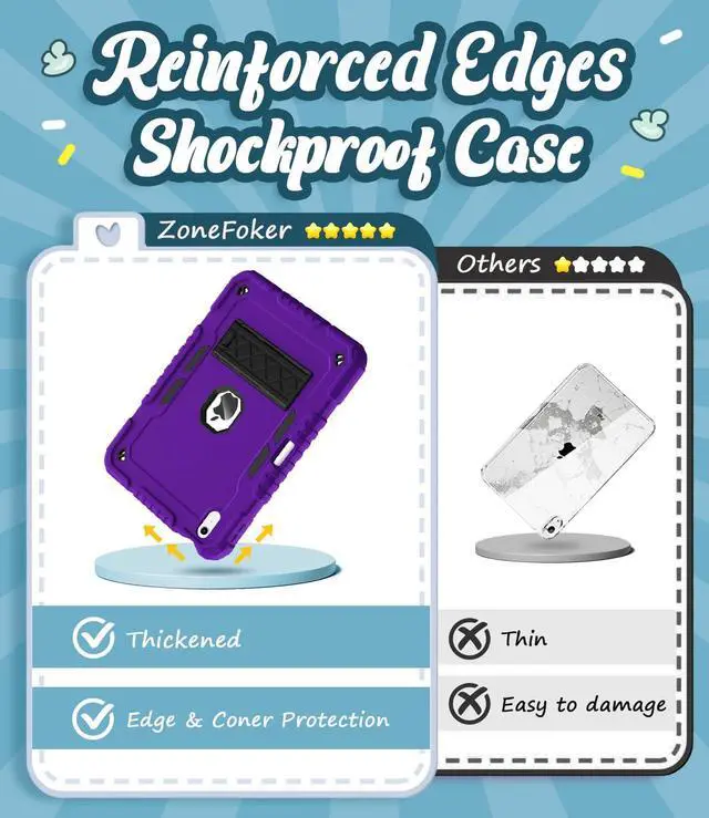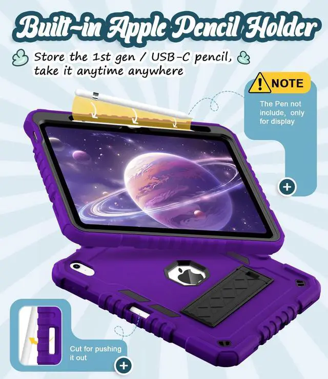 ZoneFoker for iPad (A16) Case 11th Generation 11 inch 2025 / iPad 10th Gen 10.9 inch 2022, Heavy Duty Durable i Pad 11/11 Gen Cover with Pencil Holder/Stand for Kids (Dark Purple+Black)