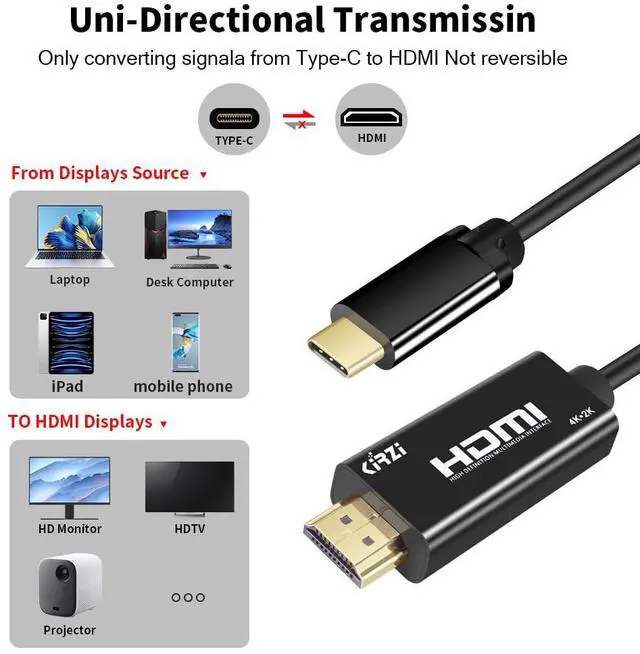 Versatile Connectivity: This USB-C to HDMI cable allows you to seamlessly connect your USB-C enabled devices like laptops, smartphones, and tablets to HDMI displays for mirroring or extending your screen.