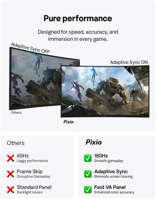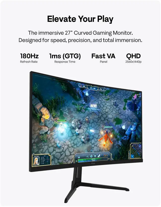 Pixio PXC278 Wave 27 inch 180Hz Refresh Rate QHD 1440p Resolution 1650R Curved Fast VA Panel 1ms GTG Response Time Adaptive Sync HDR Curved Gaming Monitor