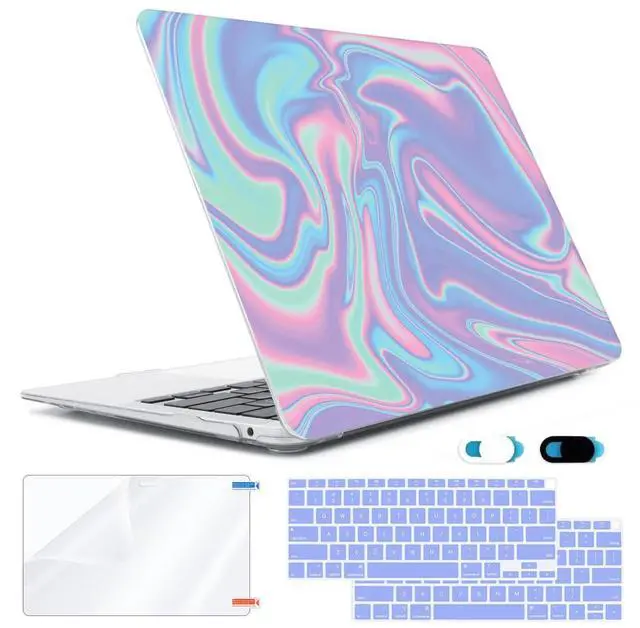 HOHAIYOO Compatible with MacBook Air 13 inch Case 2022 2021 2020-2018 Release M1 A2337 A2179 A1932 with Touch ID, Hard Print Case + Keyboard Skin + Webcam Cover + Screen Protector, Abstract Liquid