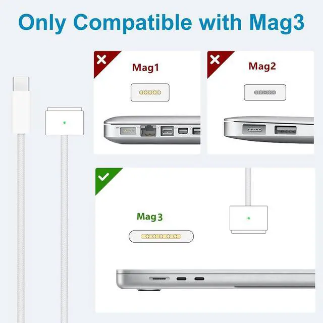Charger for MacBook Air 15 13 Inch Mac Book Pro14 Inch M4 M3 M2 M1 from 2025 2024 2023 2022 2021 70W USB-C to Mag 3 Power Adapter Include 6.6FT 5A USB-C to Mag 3 Cable (Original Quality)