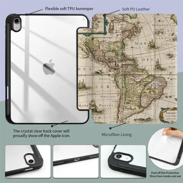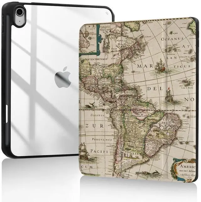 Trizoanic for iPad 11th/10th Gen Case 2025/2022 ^^ Slim Cover w/Auto Wake, 2-Stand & Pencil Slot, Anti-Yellow Clear, Ancient Map