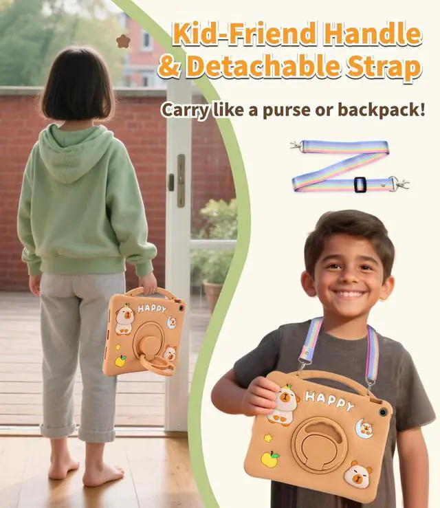 Built-in Handle & Detachable Strap for KidsDesigned for little hands! The sturdy handle makes it easy for kids to carry, while the adjustable shoulder strap is great for travel or car rides.