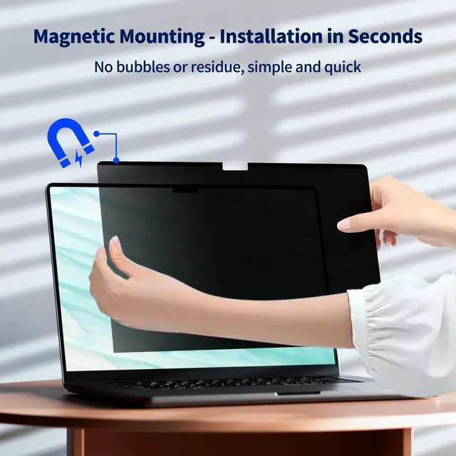 Magnetic Attachment and RemovableThere is a magnetic strip on the top of this macbook pro 16 inch 2019 privacy screen protector, all you need to do is to align the display complete the installation in seconds. Transparent adhesive strip at the bottom helps secure the privacy filter not slip off even during violent shaking. It's removable & washable and you can take it away when not in use and reinstall it again. Package contains a storage unit for the privacy protector.