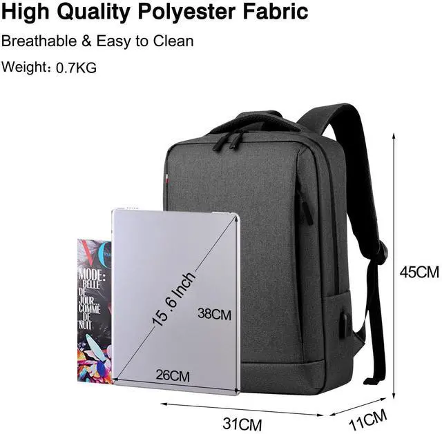 Roomy & Organized Pockets - Dimension: 31x11x45 cm(Length* Width*Height). Main Layer:independent laptop +zipper pocket+ open pocket+ pen pocket+other capacity; Extreal: front zipper pocket + side pocket. One spacious laptop backpack can store 15.6 inch laptop, supplies, travel accessories, clothes,books,etc.
