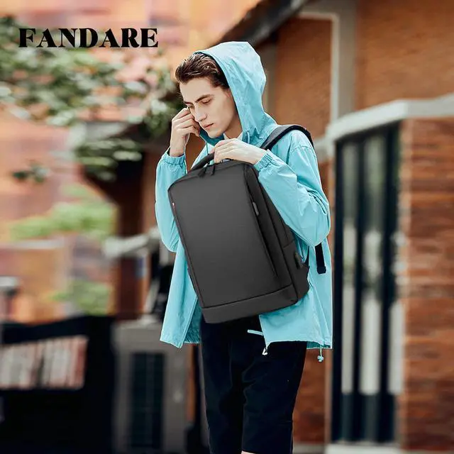 FANDARE Laptop Backpack Business Daypacks Travel Large Backpack with USB charging port Bag fits 15.6 Inch Laptop Bookbag for Men Waterproof Rucksack Dark Gray A