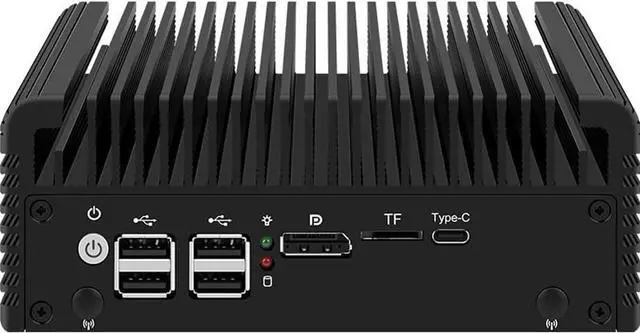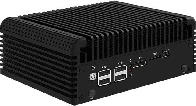 Support two storage: 2xNvme SSD+2x 2.5 ''SATA SSD/HDD., 1xMini-PCIE wireless slot, support WiF connection. Support Wide voltage input 12-19V. Support 1xHD-MI+1xDP dual display output synchronously and asynchronously. 1xDDR5 Ram Slot Support Maximum 32GB DDR5 4800MHz(suggest to choose brand like samsung, kingston, Hynix etc. to avoid compatiable issue), 1xMini-PCIE wireless slot, support Support Wide voltage input 12-19V. Support AES-NI, ESXI, Watchdog, Auto power on, PXE( if your bios version not support the function, please ask for us the bios file to update it) Full Aluminum Alloy color shell for heat dissipation, Exquisite production craft on outside design. Fanless system without cooling fan, fit for industrial grade field, work as long as 24 hours. Low consumption TDP only 10W and can be mounted back of monitor by VESA bracket (optional).