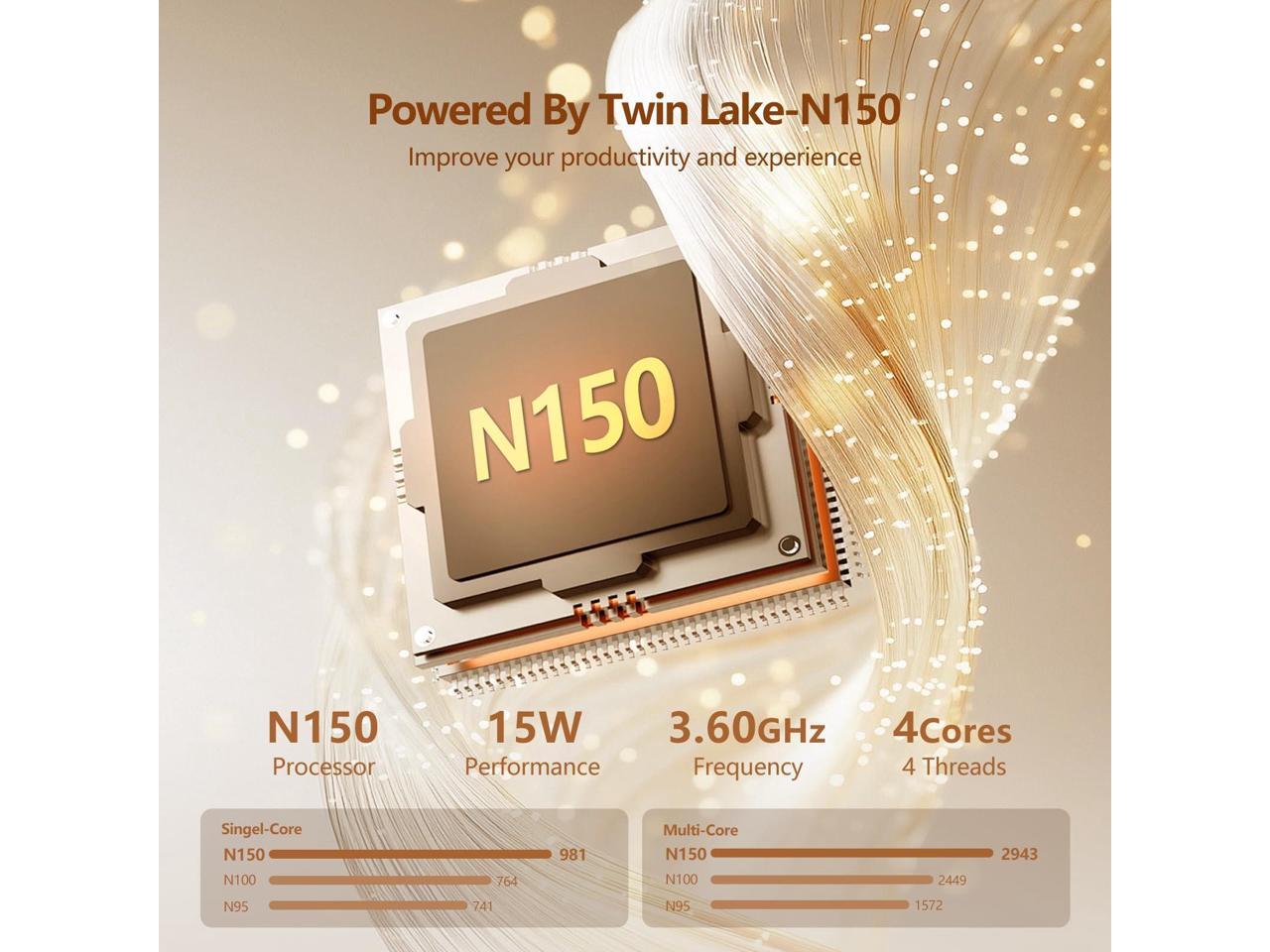 - Higher PerformanceThe laptop uses the latest 12th generation N150 processor (4C/4T, 6MB cache, 6W, up to 3.6GHz), which is much higher than Celeron N5095 or N95, providing more powerful multi-tasking capabilities.