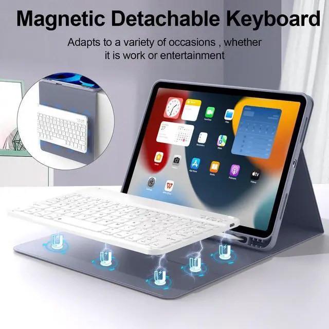 Detachable Wireless Keyboard Case : This case for iPad 11th/10th Generation keyboard is easy to attach to or remove from the magnetic cover case, and instantly connect via Bluetooth. The well-made woven fabric case gives you a comfortable touch feeling, And the keyboard case for iPad can be folded like a book, easy to carry around, it's perfect for working, taking notes and typing in office, school or on travel