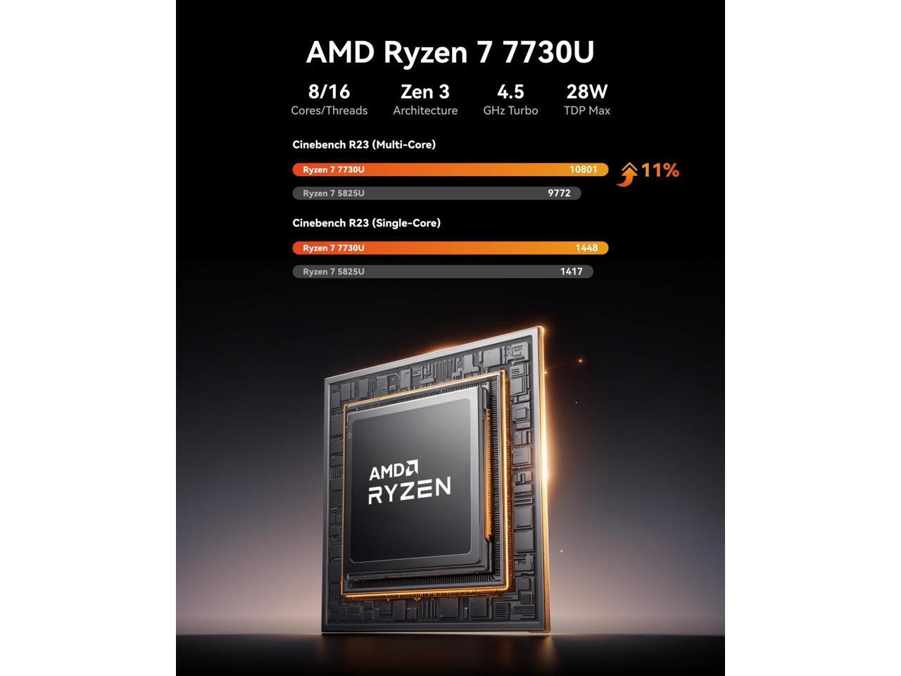 - [7730U,WHICH IS MORE POWERFUL THAN THE 5825U] - The Ryzen 7 7730U is on par with the "i7"'s performance in most tasks, if not better. Compared with AMD ryzen 7 5825U, ACEMAGICIAN mini Computer 7730U delivers more than 11% higher performance than 5825U(Reference from Cinebench R23 Multi-Core). Compared with AMD ryzen 5 7430U/6600U/3550H, K1 desktop computer ryzen 7 7730U will be more powerful, providing faster speed and efficiency