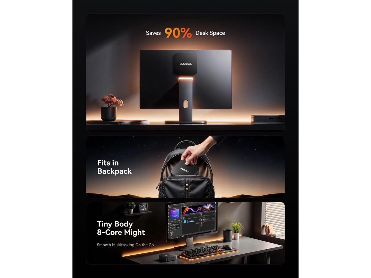 - [16GB RAM MEMORY & 512GB SSD STORAGE] - ACEMAGICIAN K1 Micro pc is prebuilt with 16GB 3200MHz DDR4 RAM, which is 20% faster than 2666MHz RAM and supports dual-channel
