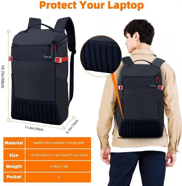 TPAID 15.6 / 17.3 Inches Laptop Bag for Men, Durable Business Laptop Backpack Water Resistant Computer Bag for Women Work College