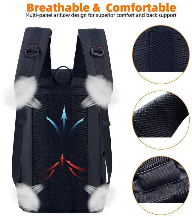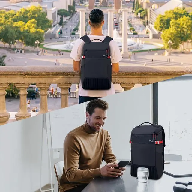 FUNCTIONAL&SAFE: A luggage strap allows backpack fit on luggage/suitcase, slide over the luggage upright handle tube for easier carrying. With a hidden anti theft pocket on the back protect your valuable items from thieves. Well made for international airplane travel and day trip as a travel gift for men.