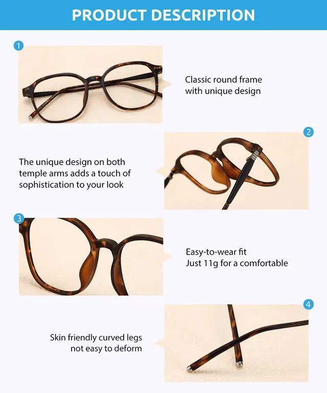 HIGH-QUALITY FRAME - The frame of TR90 material is not only unbreakable but also lightweight and flexible, making it comfortable and safe to wear for extended periods. Stylish style, puts you in the spotlight all the time