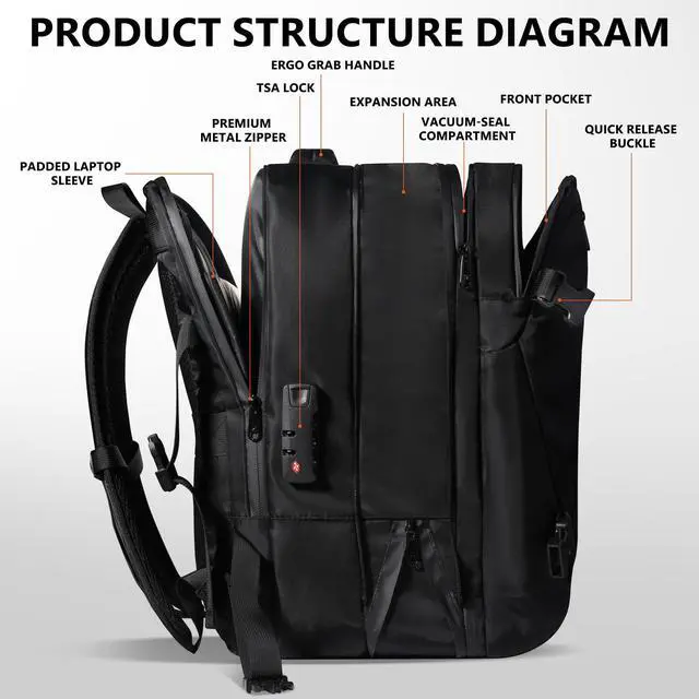 Anti-theft lock design: The vaccum backpack is equipped with a TSA-certified main compartment combination lock to ensure the safety of your items during the trip,vacuum bags for travel allow you to travel with peace of mind and protect your valuables from theft anti theft backpack.