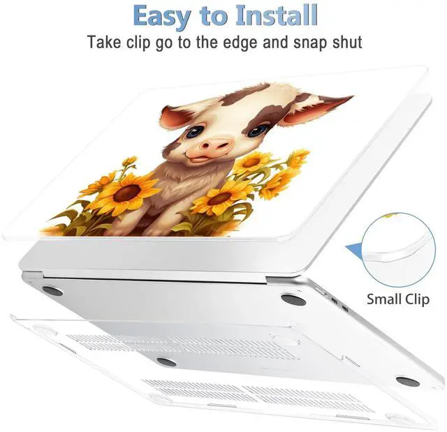 Mektron Compatible with M4 MacBook Air 15 inch Case 2025 A3241 2024 2023 M3 A3114 A2941 M2 Liquid Retina Display Touch ID, Plastic Hard Case & Keyboard Skin & Screen Protector - Cute Cow