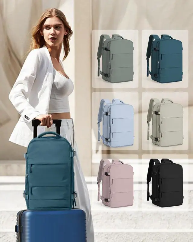 • Travel BackpackThis carry on backpack is made of waterproof durable polyester, good air permeability and heat dissipation with two padded shoulder straps, offers lightweight carrying and of force reinforcement,keeping cool when you carry it for a long time. And it is tough, firm and does not fade.