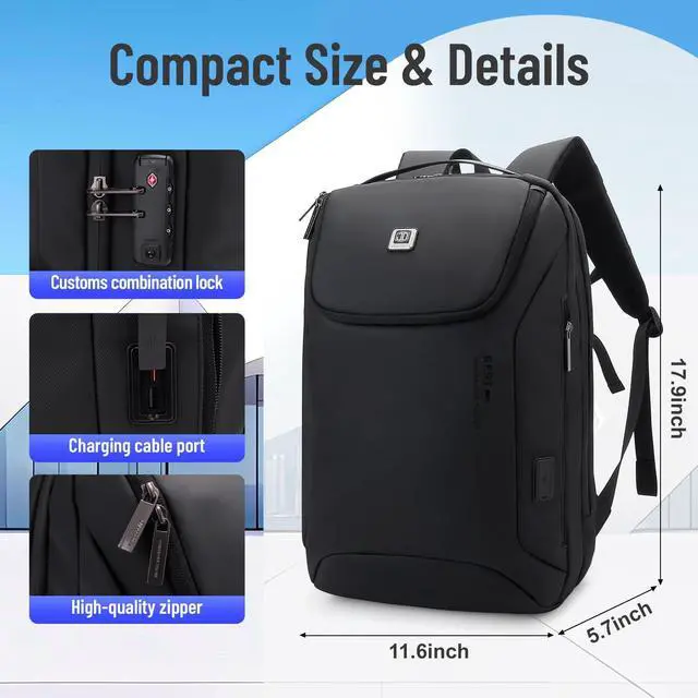 Backpack Size:12.2"L x 18.9"H x 5.5"WWeight :2.65 lb Simple and smooth,accommodating 17inch, can be used as business, daily, outdoor, travel, overnight backpack