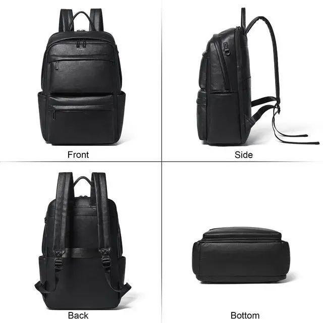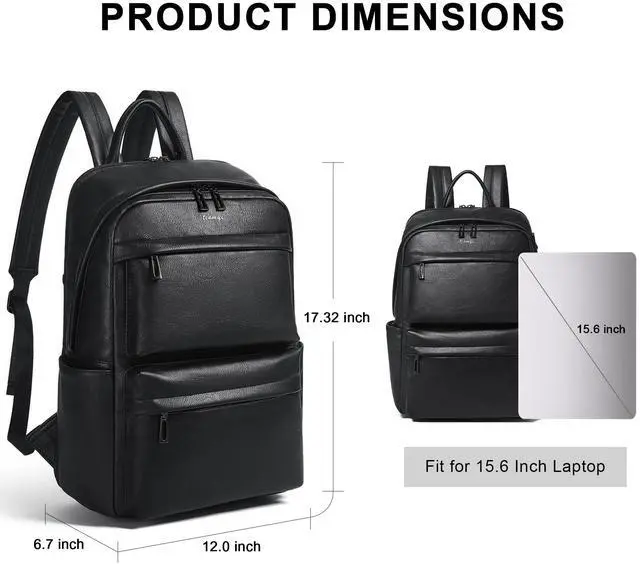 Dedicated 15.6" Laptop CompartmentThis leather laptop backpack has a padded laptop compartment that fits laptops up to 15.6 inches, keeping your device safe from scratches and bumps.