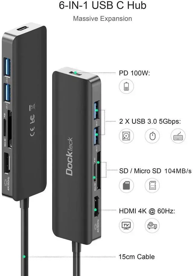 Item 1: 6-in-1 USB C Hub Multiport Adapter with 100W PD, 4K 60Hz HDMI, 2*USB 3.0, SD/TF Card Reader