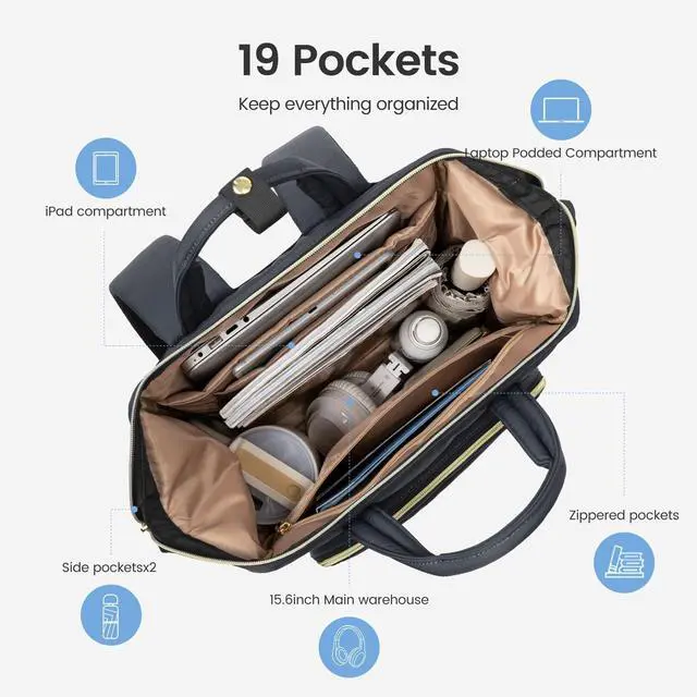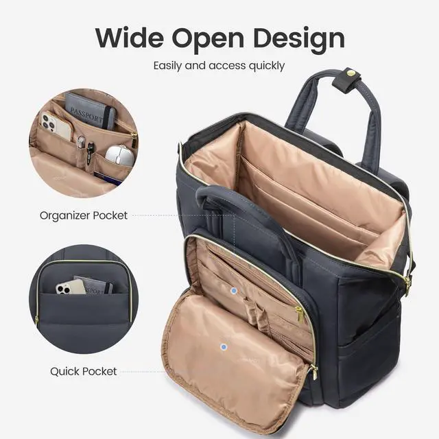 Wide Open Teacher Nurse Backpack Work Bags: Reinforced edges and steel frame of the main compartment keep the perfect shape of the bag,the top opens,you can see your things easily and access quickly,most easily organized.Teacher backpack with laptop compartment,nurses bags and totes for work,work backpack for women professional.