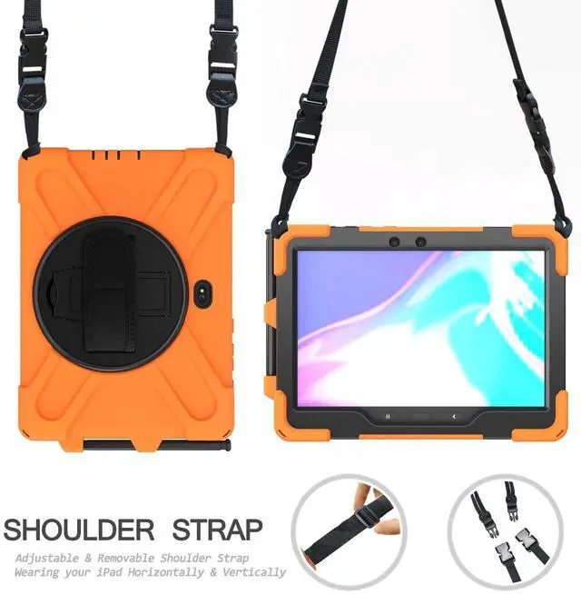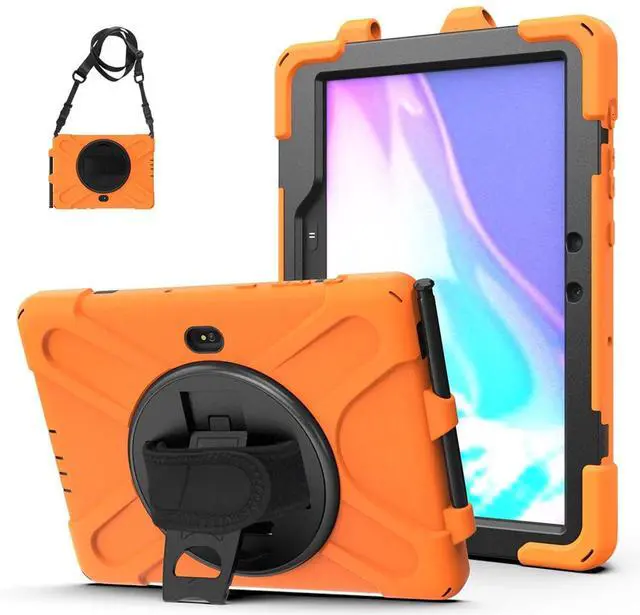Blllue Case for Samsung Galaxy Tab Active Pro 10.1 Inch SM-T540/SM-T547, 360 Degree Swivel Kickstand Hand Shoulder Strap Shockproof Rugged Protective Case for Samsung Tab Active4 Pro, Orange