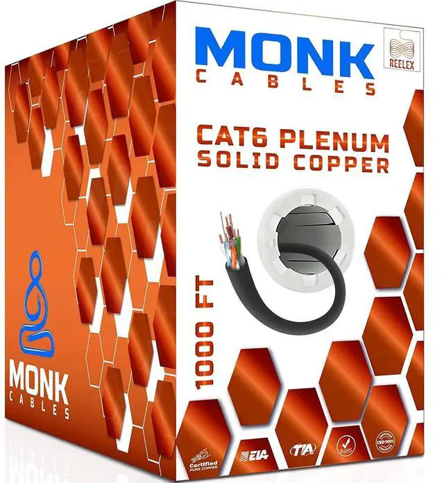 MONK CABLES | CAT6 Plenum Cable 1000ft | 100% Pure Copper | UTP, 23AWG, 550MHz | DSX-8000 Certified | Most Certified Cable of The Whole Market (Black)