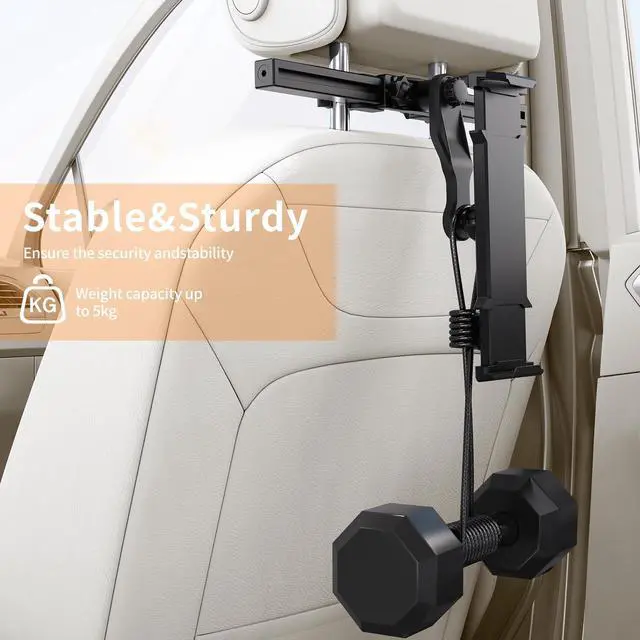 DURABLE & SAFE DESIGN: The car headrest iPad stand is made of high-quality materials, stability and durable. The bracket rod is made of durable aluminum alloy and is locked and installed with the metal crossbar of the car headrest, which can further enhance stability during travel and protect the tablet bracket firmly from sliding. (Installation without tools)
