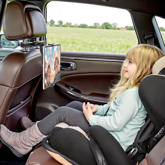 360°ROTATABLE ANGLE: The car tablet holder with 360°rotating angle, allowing you to rotate or adjust the angle of the tablet between vertical and horizontal directions, reducing the pain caused by looked down on tablet, to meet your usage needs at different angles.All to let your child get comfortable position and enjoy the pleasure by car.