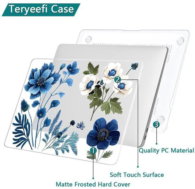 Teryeefi Compatible with M2 M1 MacBook Pro 13 Inch Case A2338 A2289 A2251 A2159 A1989 A1706 A1708 (2024 20203 2022-2016), Hard Shell Case & Keyboard Cover for Mac Pro 13" - Blue Plant Flower