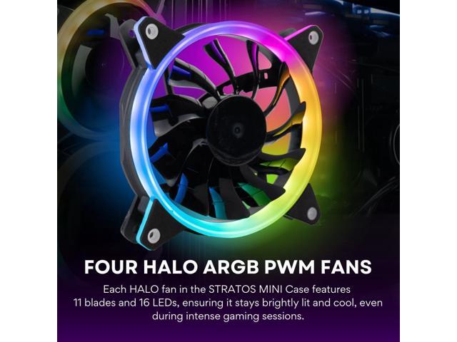 - [CUSTOMIZABLE LIGHTING] Control the look of your desktop to fit your mood with 6 different Halo RGB fan color options