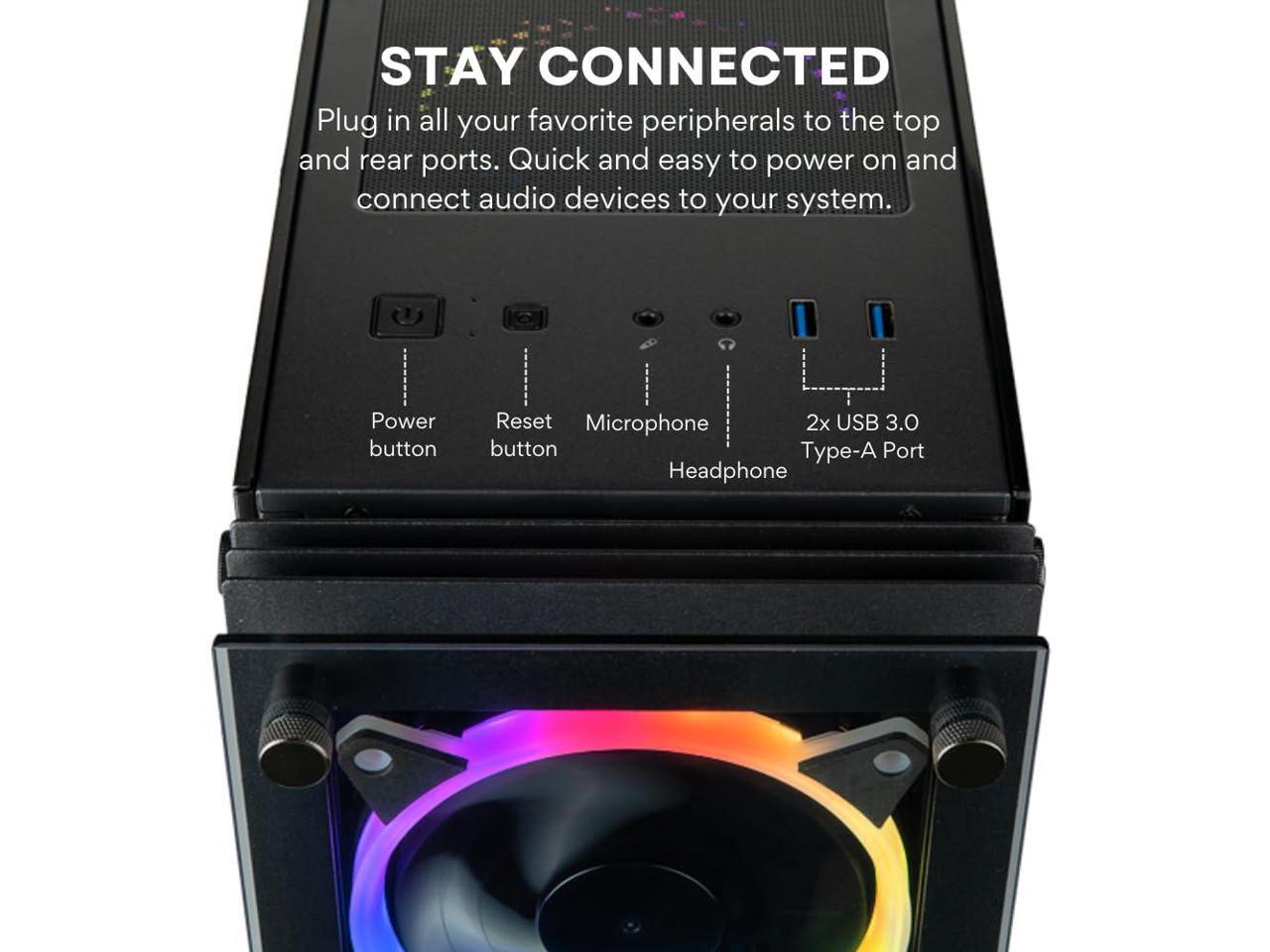 - Included Front Panel Ports: 2x USB 3.0 Type-A Port, 1x 3.5mm Headphone Jack