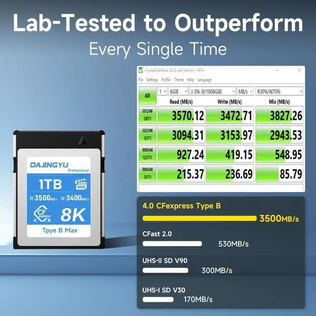 Unmatched Speed & Performance: CFexpress type b Experience blazing-fast speeds with up to 3500MB/s read and 3400MB/s write, ensuring seamless 8K/4K RAW video recording and high-speed burst photography without any lag or dropped frames.